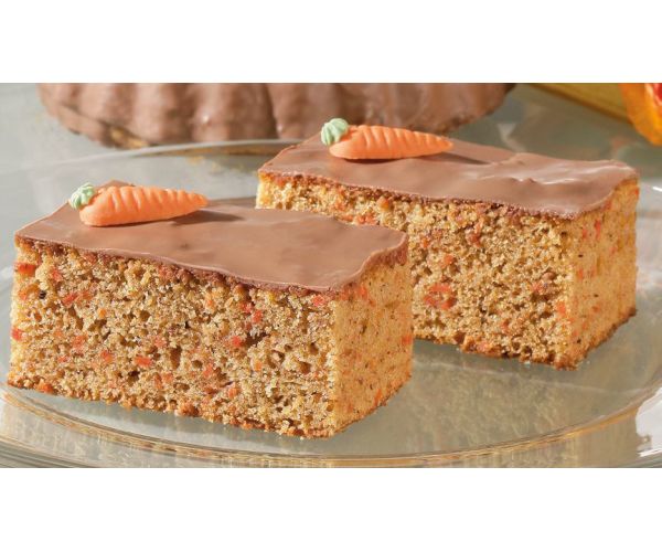 Spread the batter on a tray and bake. After baking and glaze with apricot jelly. After cooling, cover with light-coloured coating or fondant. Decorate as desired (e.g. marzipancarrots from DREIDOPPEL).