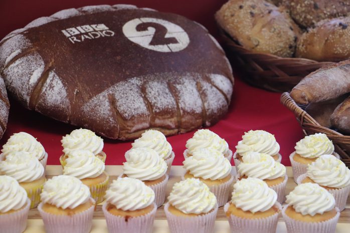 After the show was over at 12 noon, Ken, Scouting For Girls, Daniel and the BBC Radio 2 crew, along with our staff were treated to a good old fry up. Ben Jennett from Sonneveld and our own Caitlin Trimble and Finbar Haughey had been busy the week before preparing all of the display breads, buns and the Popmaster cake.
