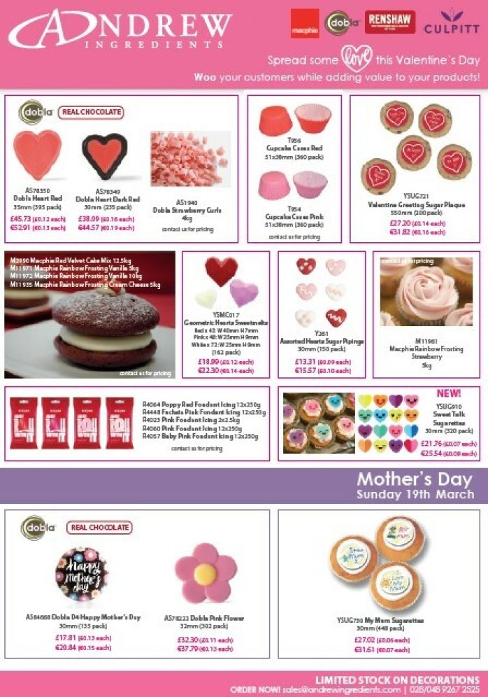 Check out our range of Valentine's and Mother's Day decorations and related products. Our decorations are a simple and inexpensive way to add value to your baked products.
