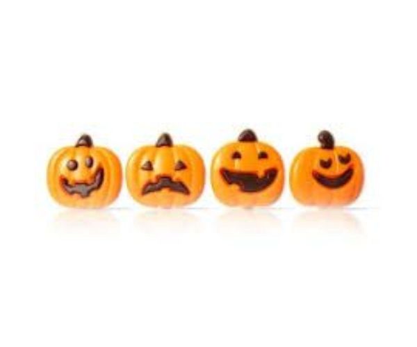 Plain chocolate with a dark-brown colour and coloured white chocolate with a characteristic odour and taste of plain resp. white chocolate. 37x40mm