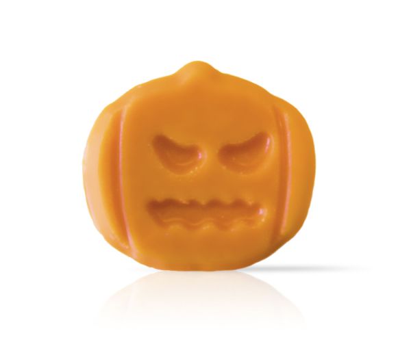 Halloween themed chocolate decoration. Orange coloured cocoa confectionery with a characteristic odour and taste of white chocolate. 33mm.
