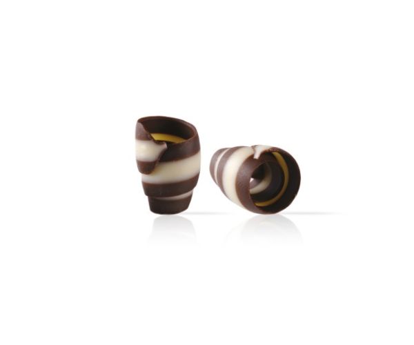 Plain and white chocolate striped rose curl shape. Add as a finishing touch to any cake or dessert (13 x 18 x 25mm)