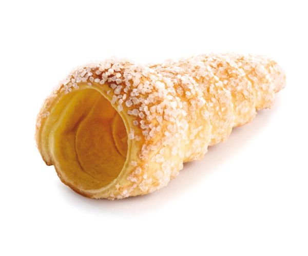 Sweet puff pastry product ready to fill, decorated with sugar and crispy crunchy structure. 12cm x 0.35cm x 5.2cm