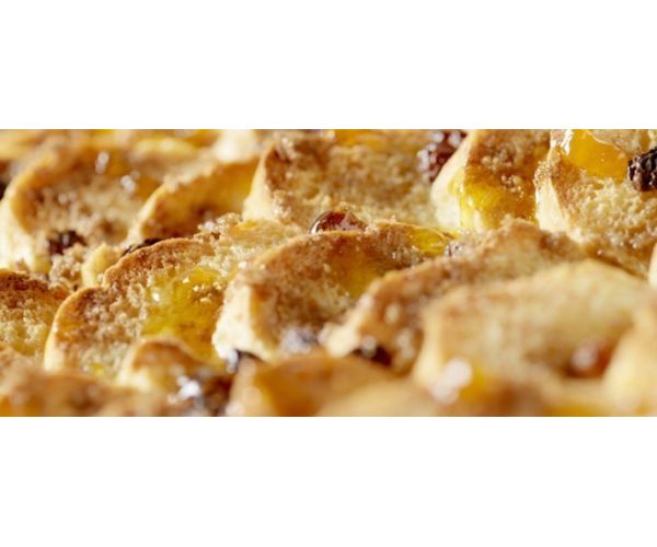 Pour the liquid over the bread and sprinkle with nutmeg.