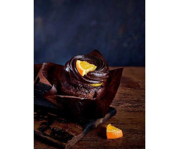 Moist chocolate muffins filled with zesty orange fruit filling, topped with rich chocolate fudge icing and finished with a decorative orange slice. A classic chocolate and citrus combination, perfect for any display.