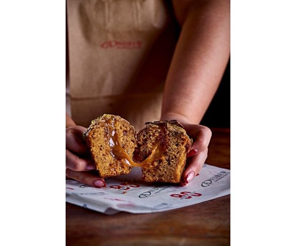Soft caramel-flavoured muffins filled with rich toffee caramel, dipped in smooth caramel chocolate and finished with caramel crumble and a decorative chocolate bar. A perfectly indulgent treat for any counter display.