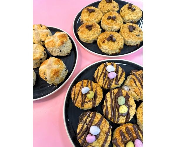 Our WorkWith Scone Mix works perfectly for additions, especially at Easter! With Chocolate Eggs, Chocolate Honeycomb and Hot Cross Spices