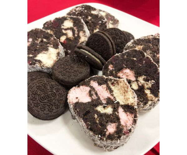 • Add Oreo biscuits to mixer with paddle and mix until the biscuits are a crumb