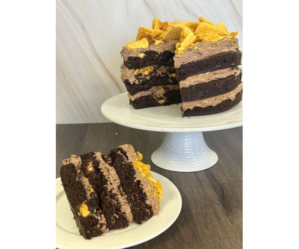 This indulgent vegan chocolate honeycomb cake is the perfect combination of soft, creamy and crunchy