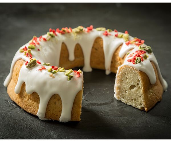 Deposit batter into bundt cake tin (400g), then bake at 360 °F (180 °C) for 40-45 minutes
